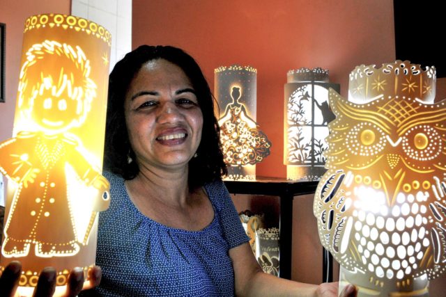 Artesã, Joana Darque Lima, de 43 anos, recorreu ao Prospera pela terceira vez para ajudar na compra de matéria-prima para as luminárias que fabrica com o marido, em Samambaia.
