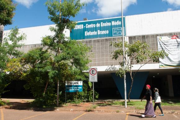 A situação precária de escolas públicas do Distrito Federal (DF) não é um assunto novo para os moradores. Um exemplo de abandono é o Centro de Ensino Médio Elefante Branco, escola tradicional de Brasília, construída há 53 anos. O lugar nunca passou por uma reforma. Partes do teto estão caindo, os pisos são irregulares, existem rachaduras de mais de 5 centímetros e infiltrações nas paredes. Também não há extintores de incêndio.