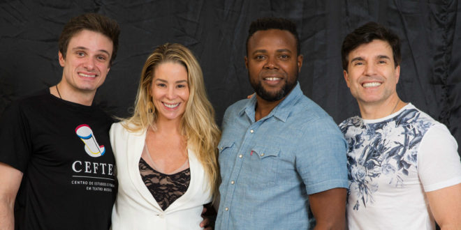 As novidades foram um desafio para o elenco, encabeçado por Adriana Lessa, que substituiu Danielle Winits, presa à rodagem de um filme. “Trabalhei em um espetáculo de revista dirigido por Abelardo Figueiredo e sei como esse tipo de teatro chega bem ao público”, diz ela, que vive Suzete Campos, grande atriz de musicais que será dirigida pelos veteranos Nogueira (Dagoberto Feliz) e (Dino) Marcelo Góes. Ele, porém, terão de enfrentar as ideias modernas da assistente Clara (Giulia Nadruz). “Ela acrescenta celulares à cena”, diverte-se a atriz. Todos sob a proteção dos anjos Jura (Érico Brás) e Gero (Reiner Tenente), dupla atrapalhada que remonta a Oscarito e Grande Otelo. “Um elenco com protagonistas negros, motivo de orgulho”, observa Brás.
