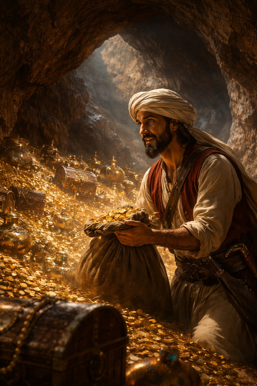 No fim, a caverna continuaria cheia, porque o mundo nunca deixa de produzir ganância. Mas Ali Babá aprenderia a mais difícil das lições: guardar o segredo é menos trabalhoso do que carregar as consequências dele.