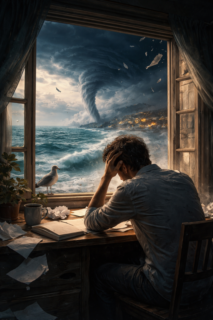 Desperto, relembra as visões do oceano.