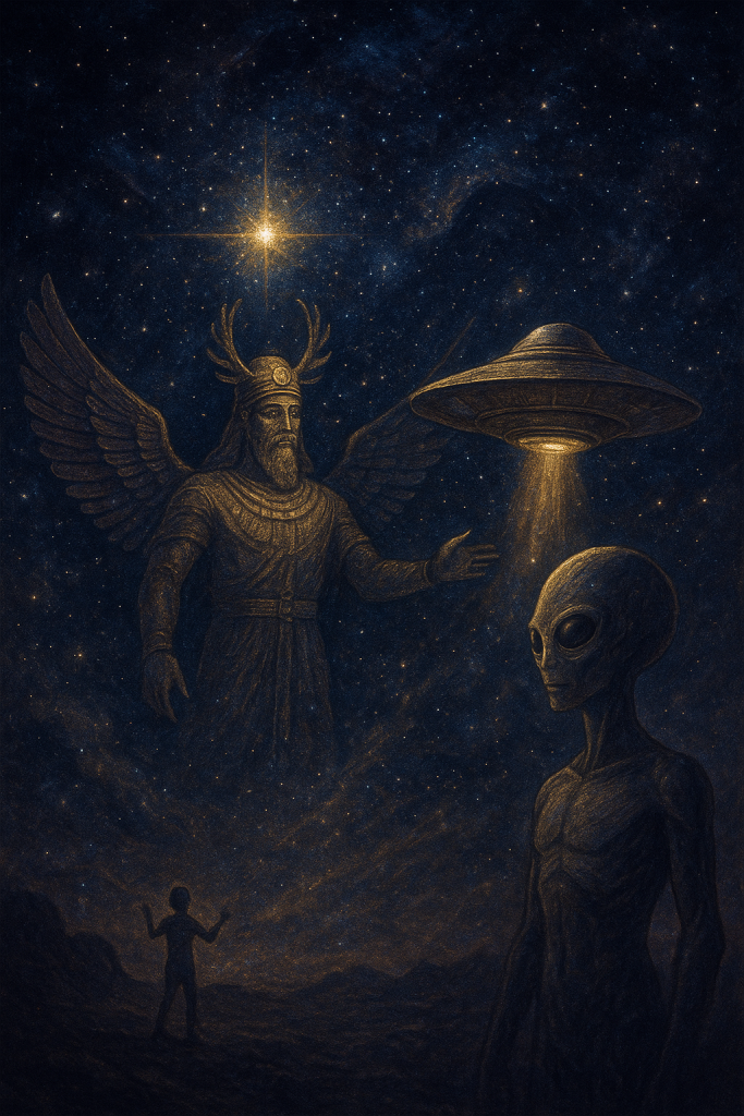 E assim nasceu uma das mais fascinantes vertentes da mitologia: a ideia de que deuses e criaturas celestes poderiam ser — ou parecer — visitantes de outros mundos.