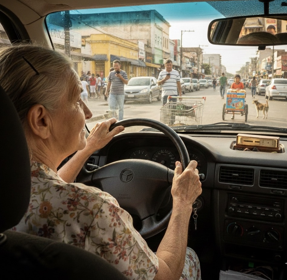 Tem exatamente 50 anos que dirijo. Nunca aconteceu nada comigo, nunca me envolvi em nenhum acidente. Lógico que isso é pura sorte, pois dirijo aqui na minha cidade (Luziânia), além de Goiânia, Brasília e até no Rio de Janeiro, mas aqui na minha cidade é o pior lugar que tem para a gente dirigir. As pessoas andam no meio da rua, os ciclistas não obedecem a mão de direção, sempre andam em direção contrária e, muitas vezes, temos de parar para não os atropelar. Os meninos que vendem picolé, nos carrinhos, também não têm senso de direção, cachorros soltos pelas ruas, gatos, periquitos, papagaios, e outras coisas para atrapalhar.