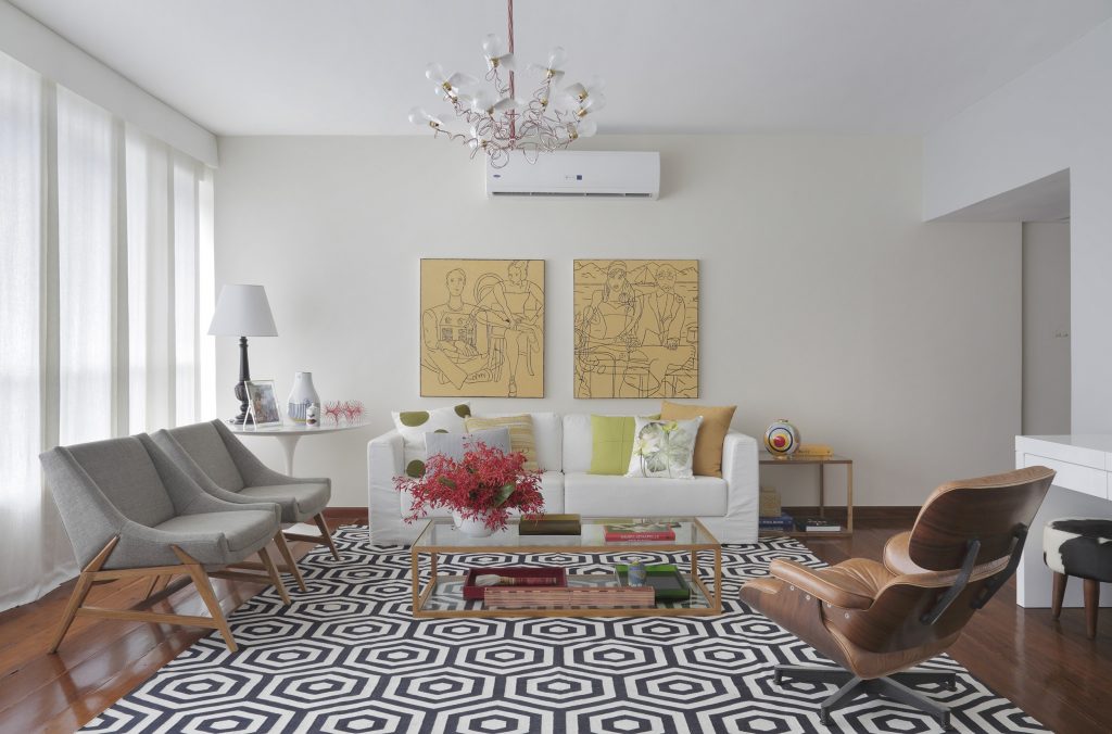 – Sala de estar: O ideal é que todos os móveis que compoem este ambiente fiquem sobre o tapete.