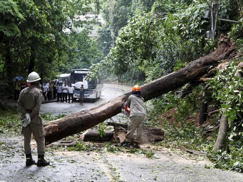 A outra caiu na Estrada da Gávea Pequena, altura do número 1.541, perto da residência oficial do prefeito Eduardo Paes, interditando o tráfego de véiculos nos dois sentidos. Nesse local, a situação é mais complicada, porque os bombeiros não conseguem cortar a árvore, já que o tronco caiu sobre a rede elétrica e há necessidade de técnicos da concessionária Light para desligar a energia.