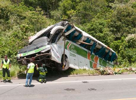 O veículo levava artesãos de Porto Seguro (BA) para o Rio de Janeiro, quando capotou e caiu em um barranco de aproximadamente 20 metros.