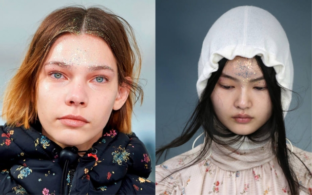 No último domingo, 18, aconteceu o desfile da Preen By Thornton Bregazzi durante a Semana de Moda de Londres e, um detalhe da beleza chamou bastante atenção. Diversas modelos contaram com aplicação de glitter em toda a testa.