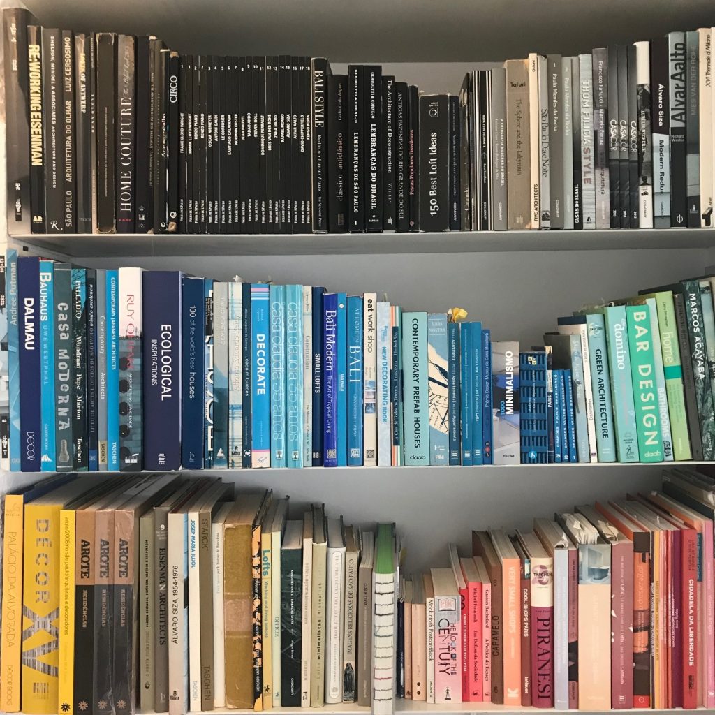 Na minha casa, já há alguns anos, os livros são organizados por cor. E não, essa ideia não saiu da minha cabeça, eu provavelmente jamais teria pensado nisso. Um grande amigo, que numa época trabalhou comigo como produtor visual, pegava meus livros emprestados para fazer produções fotográficas e, quando os devolvia, brincava de arco-íris nas minhas prateleiras. Ficou lindo e eu, como bom esteta que sou, assimilei a arrumação.