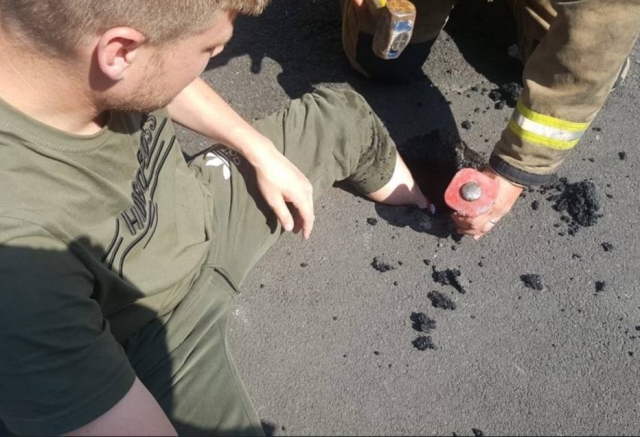 “Hoje nós tivemos um incidente em Heaton. Um jovem pisou em asfalto que ainda estava mole e ficou com o pé preso. O asfalto ficou tão mole durante a recente onda de calor que derreteu. Ele ficou calmo e ligou para a emergência. Felizmente, ele não quebrou seu tornozelo, ele estava usando as botas Dr. Martens de seu avô!”, disse o perfil do corpo de bombeiros da cidade no Twitter.