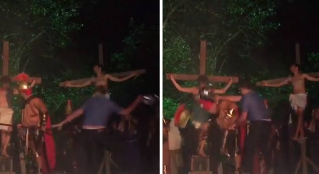 Tudo corria bem durante uma encenação da Paixão de Cristo no município de Nova Hartz, no Rio Grande do Sul, até que um ‘soldado romano’ entra em cena e machuca ‘Jesus Cristo’ com uma ‘lança’.