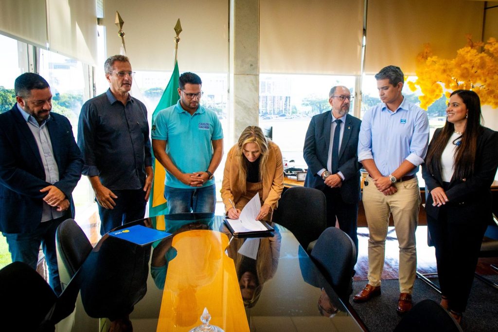 Na tarde desta quinta-feira (23), foi assinada no Palácio do Buriti a licença de instalação para um empreendimento localizado ao sul da BR-060, a oeste da DF-001, no Setor Habitacional Parque da Bênção (SHPB), na Região Administrativa do Recanto das Emas. A área pertence à bacia hidrográfica do Rio Descoberto. A licença autoriza a execução das obras de infraestrutura do projeto urbanístico aprovado pelo Decreto nº 46.300/2024, mas veda a supressão de vegetação nativa.