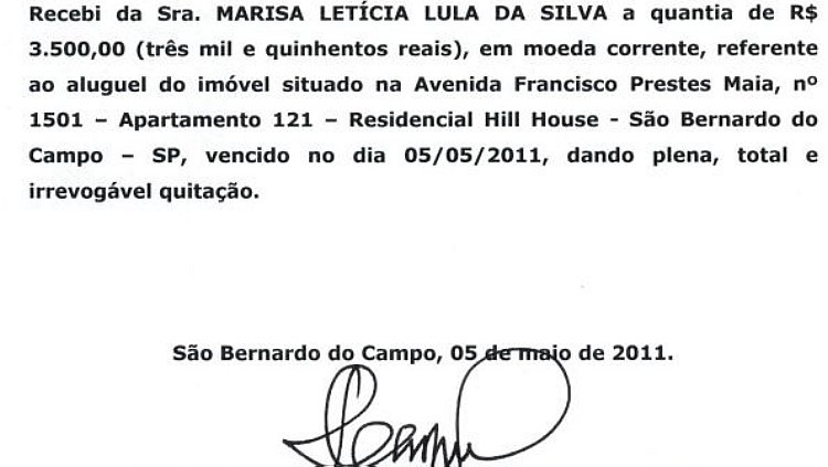 O juiz federal Sérgio Moro decidiu rejeitar ação protocolada pela força-tarefa de procuradores da Operação Lava Jato para investigar a veracidade dos recibos do aluguel pago pelo ex-presidente Luiz Inácio Lula da Silva por um apartamento, localizado em São Bernardo do Campo (SP), vizinho ao que ele mora. Na decisão, Moro disse que os recibos “não são materialmente falsos”, no entanto, podem ser “ideologicamente falsos”. A suspeita do juiz é que os recibos podem ter sido assinados por Glaucos da Costamarques, proprietário do imóvel, mas não houve o pagamento pelo aluguel. Segundo o juiz, a conclusão definitiva sobre a questão somente poderá ser obtida durante o andamento da ação penal a que o ex-presidente responde na Justiça Federal em Curitiba.