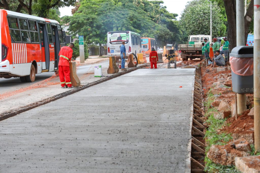 A obra contemplará os dois lados da avenida, tanto no sentido W3 Norte quanto no rumo da Estrada Setor Policial Militar. Desta forma, cada lado terá uma faixa de rolamento com pavimento rígido, por onde passará o transporte público, e duas com pavimento flexível, para o fluxo de carros e motocicletas.
