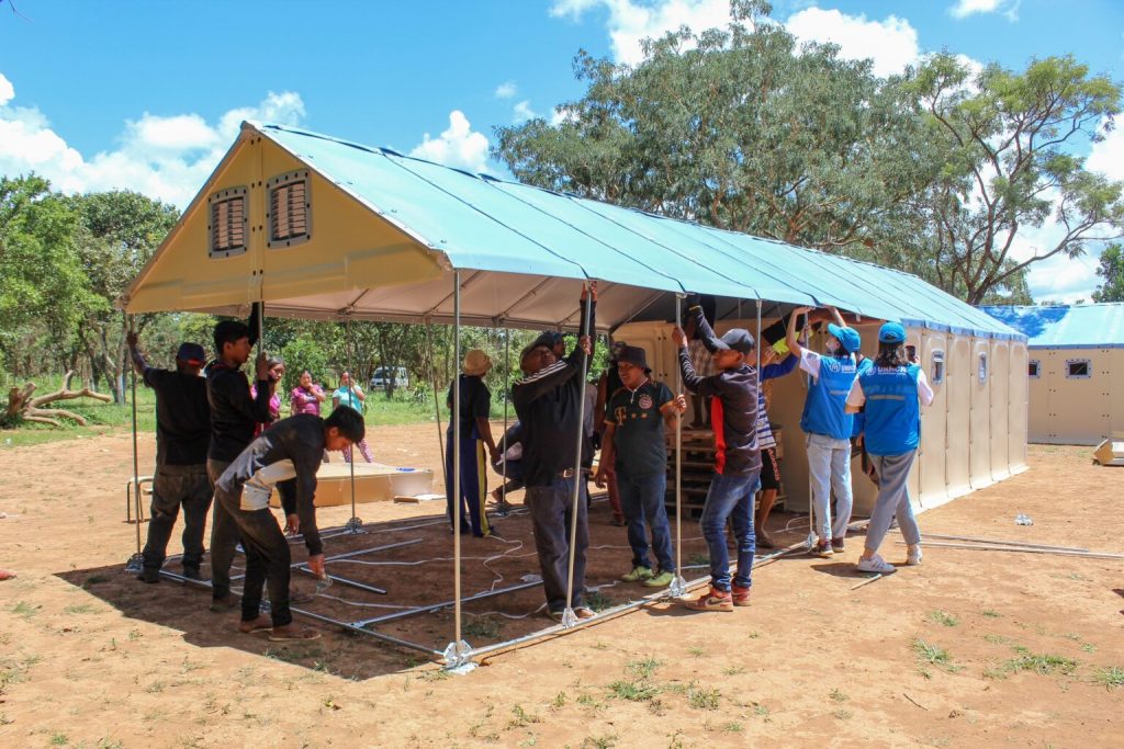 A Acnur auxiliou com a doação das estruturas resistentes, principalmente, à ação das chuvas típicas desse período. A Sedes precisou viabilizar, dentro do Governo do Distrito Federal, o fornecimento de paletes, brita, uma parte da mão de obra e a preparação do terreno (poda de árvores, roçamento da grama). A ONU cuidou do deslocamento dos materiais até o local e da designação de uma engenheira para dar andamento à instalação, iniciada na semana passada.