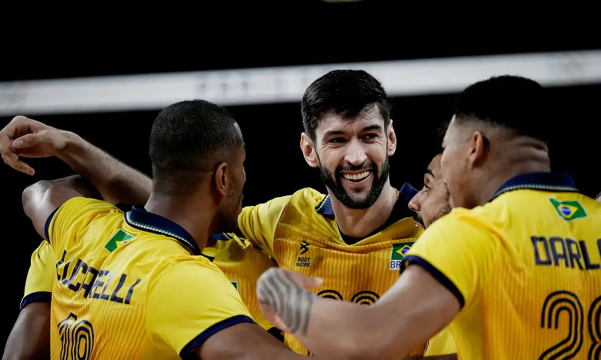 A seleção brasileira masculina de vôlei inicia nesta quarta-feira (11) a campanha pelo bicampeonato na Liga das Nações de Vôlei (LNV). O técnico Bernardinho definiu os 14 jogadores relacionados para a estreia contra o Irã, às 17h30 (horário de Brasília), no Ginásio do Maracanãzinho. Por conta de uma lesão no ombro, o ponteiro e capitão Lucarelli não jogará esta primeira semana do torneio, que vai até domingo (15), no Rio de Janeiro. A faixa de capitão ficará com o central Flávio Gualberto, campeão italiano pelo Trentino. O primeiro titulo brasileiro na LNV foi conquistado em 2021, quando a equipe era comandada pelo técnico Renan Dal Zotto.