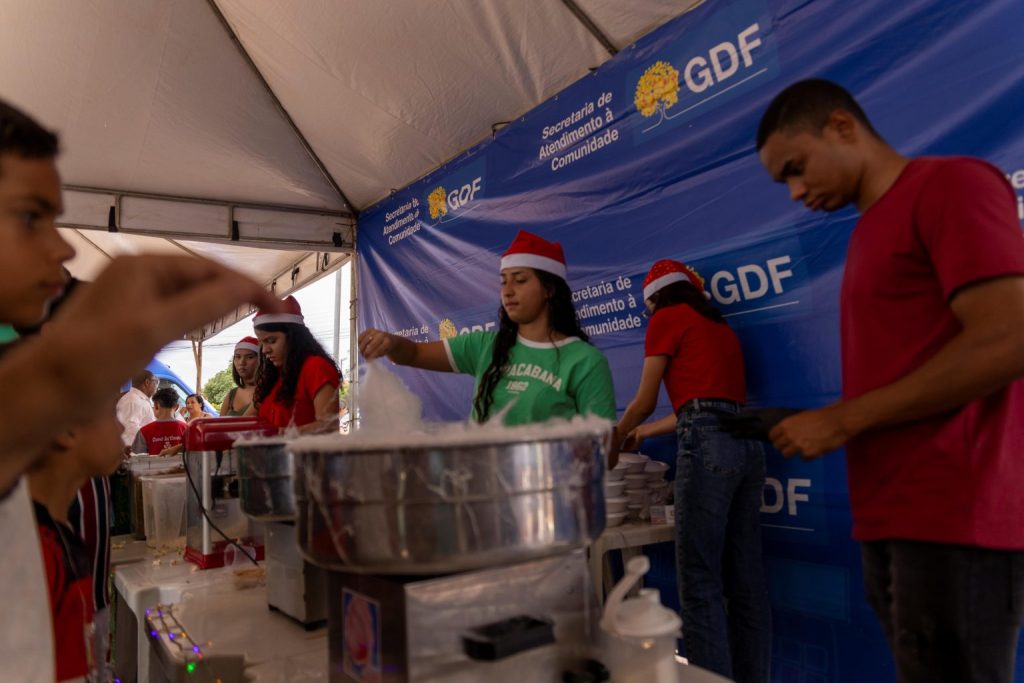 A população de Samambaia que foi nesta segunda-feira (16) ao Restaurante Comunitário da cidade, conhecido como Rorizão, contou com uma ceia de Natal completa e um evento com estrutura montada para oferecer diversão e celebração para crianças e adultos.