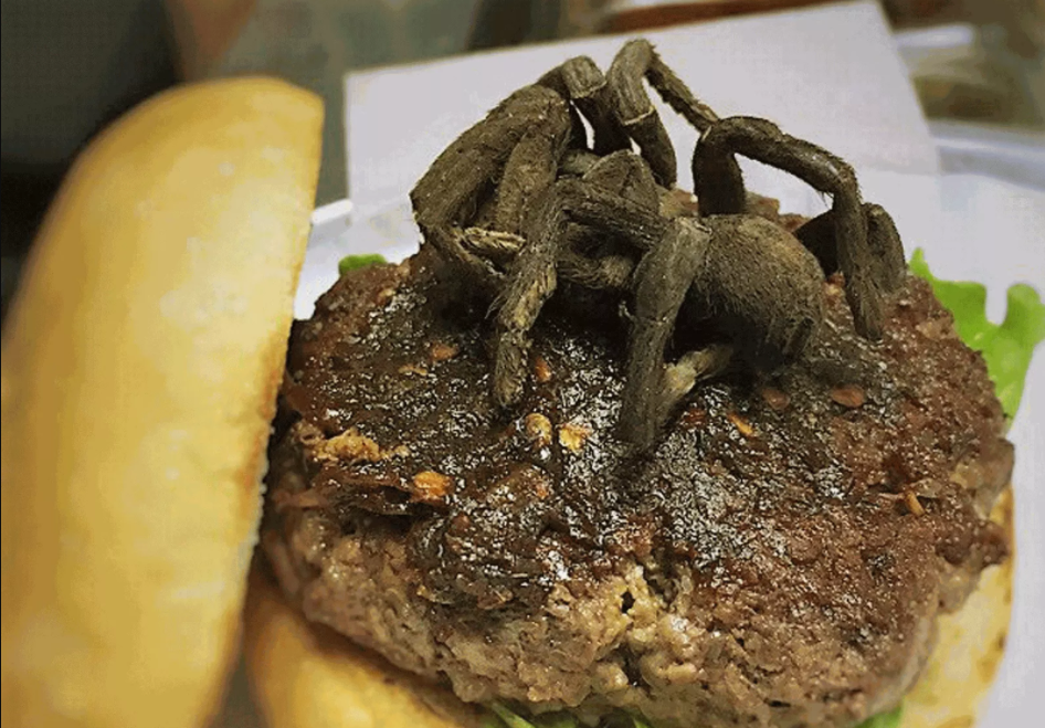 Restaurante oferece hambúrguer com recheio de aranha