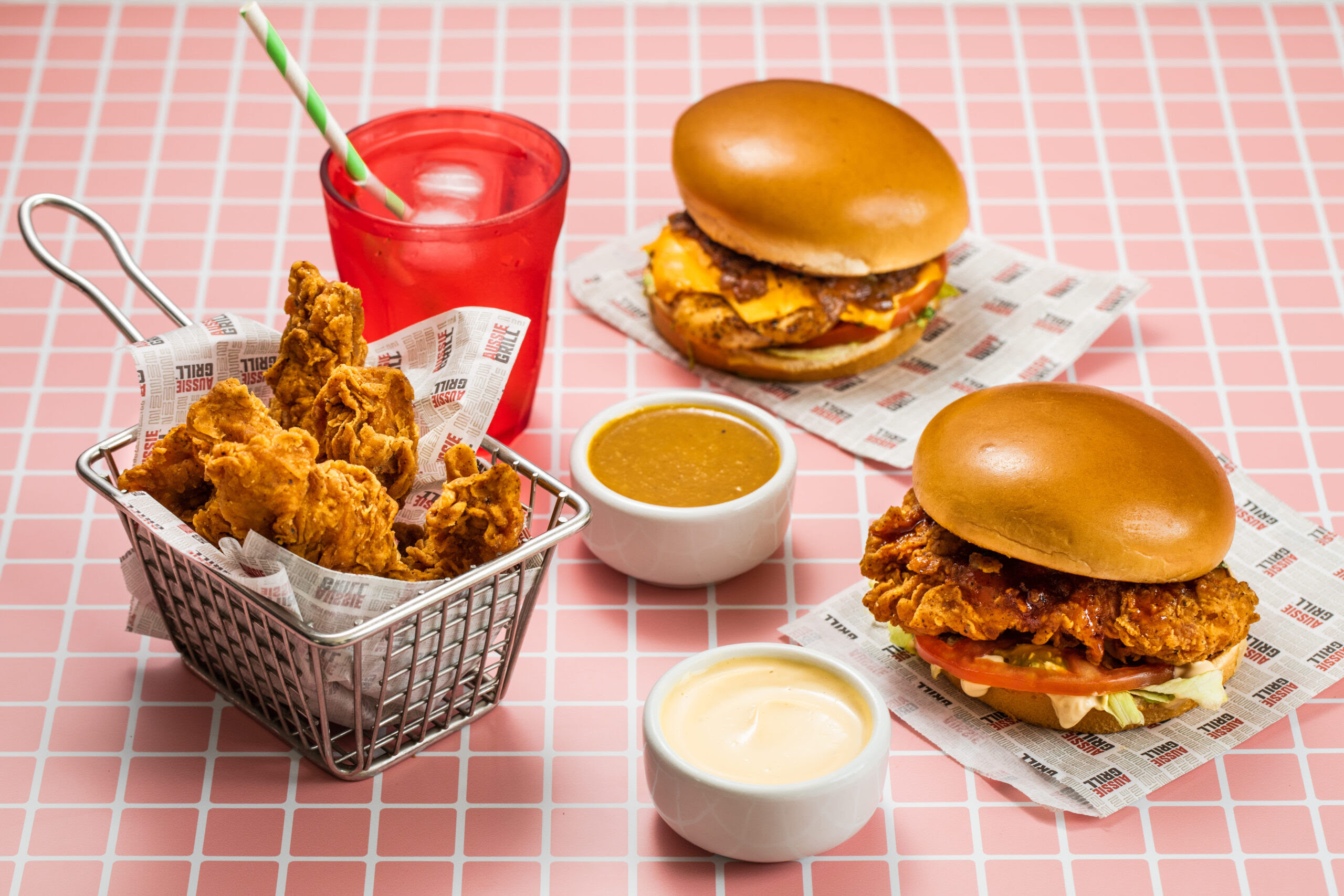 Opções disponíveis no restaurante: 1. Smoked Honey Mustard Chicken (R$ 19,90): peito de frango empanado e crocante, com cerca de 115g, servido com alface, tomate, picles, maionese defumada e molho Honey Mustard, no pão tipo brioche. O combo com acompanhamento e bebida sai pelo valor de 39,90. 2. Crispy Chicken Tenders (R$ 14,90), com 3 tiras de peito de frango empanadas com mix de temperos e servidas crocantes você. Acompanham o molho Aussie Honey Mustard.