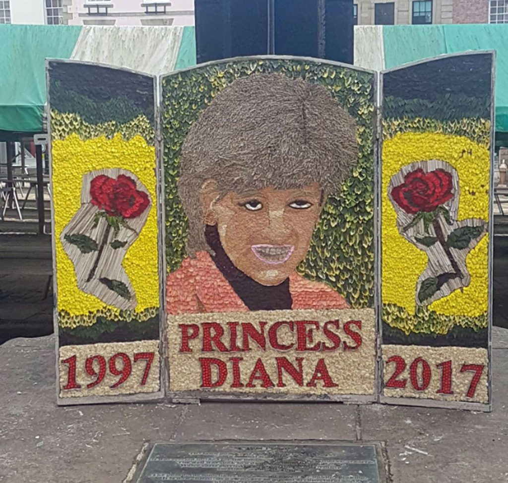 Fotos de um retrato artesanal da princesa Diana foram divulgadas nesta terça-feira (12) no perfil oficial da cidade de Chesterfield no Facebook, o que gerou polêmica entre os internautas. A obra está exposta perto do mercado da cidade inglesa e foi concebida dentro da tradição do “well dressing”, um costume rural da região de produzir, a cada ano, quadros compostos de pétalas de flores e outros materiais.