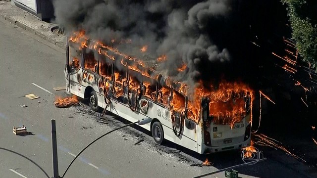 Três ônibus foram incendiados durante um protesto promovido na Avenida Dom Helder Câmara, em Del Castilho, nesta segunda-feira, 17, à tarde. O ato foi retaliação a uma operação promovida de manhã pela Polícia Militar na favela Bandeira Dois, na mesma região.