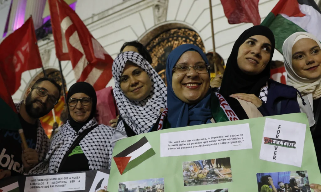 “O ato é para denunciar o que Israel faz há décadas contra os palestinos e pedir o fim da ocupação sionista”, disse Badra El Cheikh, do Sanaúd – Juventude Palestina, um dos grupos que liderou o protesto. “Somos solidários, porque a causa palestina é de todos. Não no sentido de ser uma causa romantizada, mas de representar um povo oprimido, assim como o povo pobre e trabalhador é oprimido no Brasil e no mundo”.