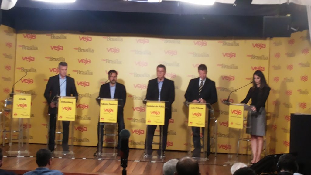 Um Arruda ausente, um Rollemberg arrojado, um Toninho atacando, um Agnelo apagado e um Pitiman abandonado. Essa a síntese do que aconteceu na noite desta segunda-feira 8, no debate promovido pela Vejinha (a versão brasiliense da Revista Veja, que circula semanalmente em Brasília).
