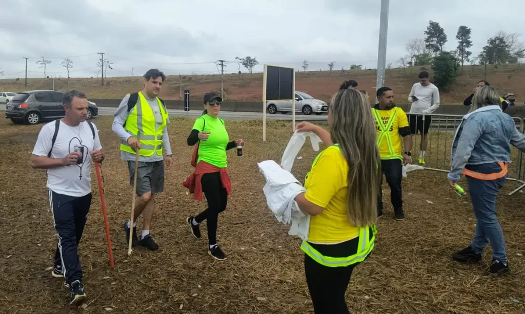 Além disso, os romeiros estão utilizando os pontos para descanso, que contam com cadeiras, totens para carregar celular, banheiros, e recebem também itens de segurança, como coletes e adesivos refletivos, e água.