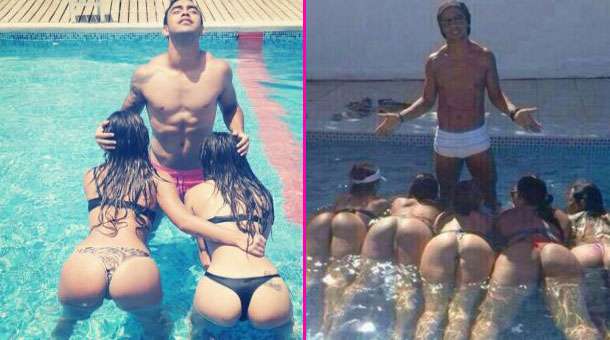 Ronaldinho anda fazendo escola, mas não é dentro de campo. O veterano meio-campista, que atualmente joga pelo Querétaro, do México, viu aquela sua mundialmente famosa e polêmica foto na piscina posando com cinco mulheres ganhar uma nova versão fora do Brasil, vinda de um jogador muito mais modesto do que o milionário atleta nacional.