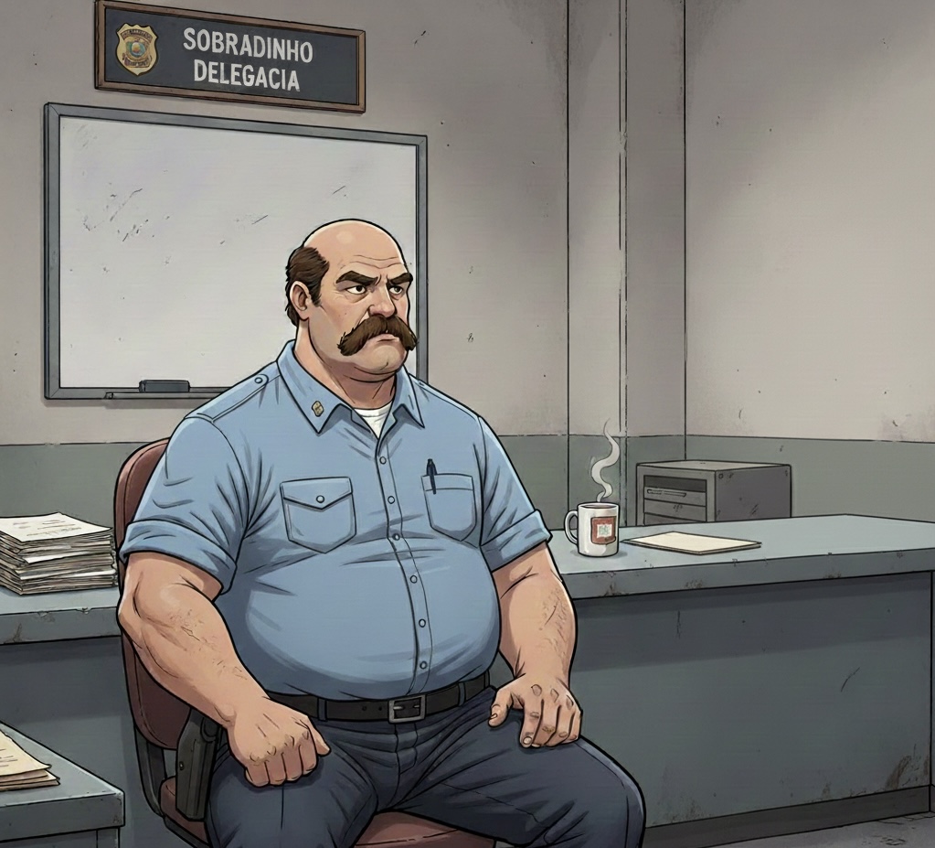 Santana, para manter a tradição, foi trabalhar com o mau humor que todos na delegacia já conheciam. Mal entrou, fez questão de fazer bico e ir direto para cozinha, onde a Sissi acabara de passar o milagroso café que mantinha toda a equipe de plantão acordada.