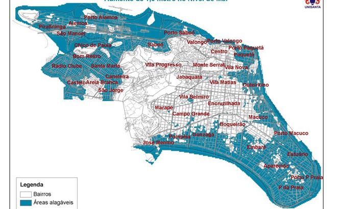 “Esses valores foram calculados com base no valor venal das propriedades que serão atingidas. Mas o estudo não incluiu os impactos no porto e na infraestrutura urbana. Por isso, o valor real do prejuízo será imensamente maior que R$ 1 bilhão”, disse o cientista José Marengo, do Centro Nacional de Monitoramento e Alertas de Desastres Naturais (Cemaden), coordenador geral do estudo – que também envolve instituições como a Universidade de São Paulo, (USP), a Universidade Estadual de Campinas (Unicamp) e o Instituto Nacional de Pesquisas Espaciais (Inpe).