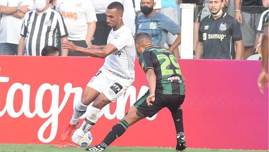 Sem posse de bola para tentar criar jogadas de ataque, o Santos ficou refém do toque de bola do América-MG, que se posicionou na defesa e concentrou a partida no meio-campo.