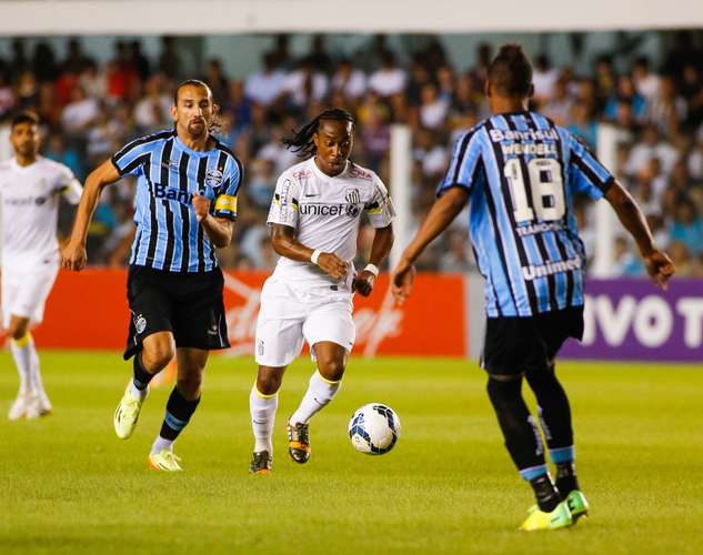 O abatimento do time gaúcho e o momento ruim do Santos pesaram no primeiro tempo. O jogo teve qualidade baixa, bem diferente do que a equipe paulista apresentou durante boa parte do Campeonato Paulista. Os primeiros minutos até davam a impressão promissora: Dudu fez fila em Jubal e Alan Santos antes de errar a finalização na cara de Aranha. Mas pouco se viu disso na etapa inicial.