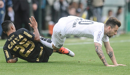 O Santos só conseguia equilibrar as ações ofensivas com as jogadas individuais de Lucas Lima, mas a marcação era implacável No mau sentido. O meia foi caçado e sofreu pelo menos três faltas feias na etapa inicial. Assim, sempre interrompido, o Santos praticamente não finalizou no primeiro tempo. Os jogadores reclamaram de um pênalti em Geuvânio, mas Leandro Vuaden também deu de ombro.