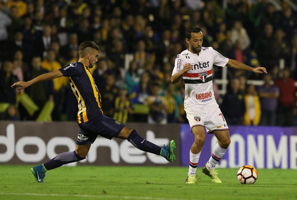 O Rosario Central tinha entusiasmo, intensidade, muitas jogadas aéreas e a força da torcida no estádio Gigante de Arroyito, mas esbarrava na ruindade de alguns atletas. Ruindade mesmo. Erros de passes e cruzamentos tortos fizeram com que o time da Argentina aproveitasse pouco a vantagem de um jogador a mais. Com isso, o São Paulo se permitiu avançar e quase equilibrar o jogo. Aos 17 minutos, Nenê acertou um belo chute no ângulo.