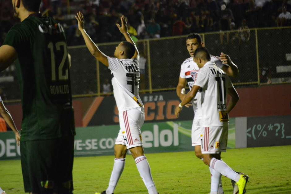 O São Paulo voltou a sair de campo com os três pontos conquistados em uma partida do Campeonato Brasileiro. Após seis jogos sem vencer, o time derrotou o Vitória por 1 a 0 na noite desta sexta-feira, no Barradão, em Salvador, pela 31ª rodada da competição. O único gol da partida foi marcado pelo zagueiro Bruno Alves, ainda no primeiro tempo.