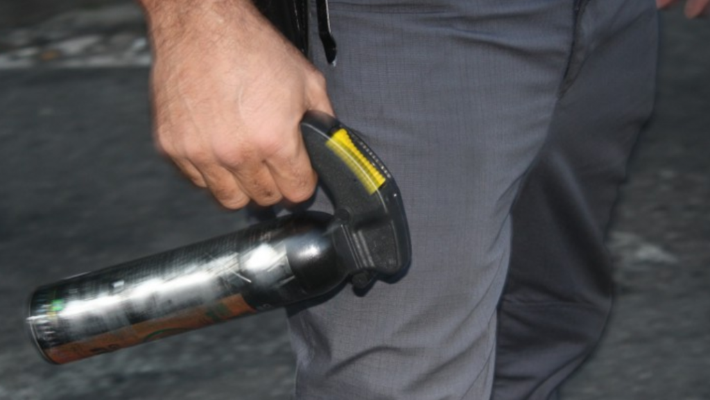 Então os vizinhos começaram a discutir. Eles afirmam que o PM chegou de carro ao local já fazendo uso do spray.