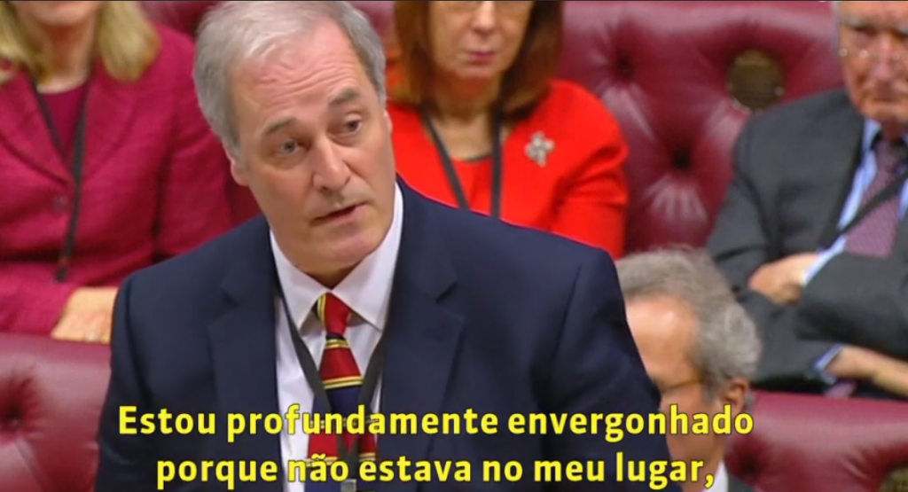 Um secretário de Estado do governo britânico provocou estupefação geral na Câmara dos Lordes ao pedir renúncia por ter chegado dois minutos atrasado na sessão em que deveria responder à perguntas colocadas ao Executivo.