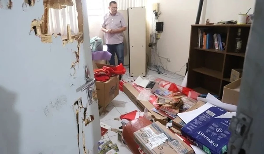 A sede do Diretório Municipal do Partido dos Trabalhadores (PT) em Diadema foi depredada nesta terça-feira (14). De acordo com o PT, o diretório foi invadido, objetos foram furtados e todas as dependências foram depredadas. Fotos do presidente da República, Luiz Inácio Lula da Silva, e da ex-presidenta Dilma Rousseff foram vandalizadas.