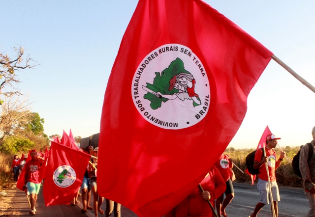 Sem-terra planta 6 bandeiras; uma é do impeachment