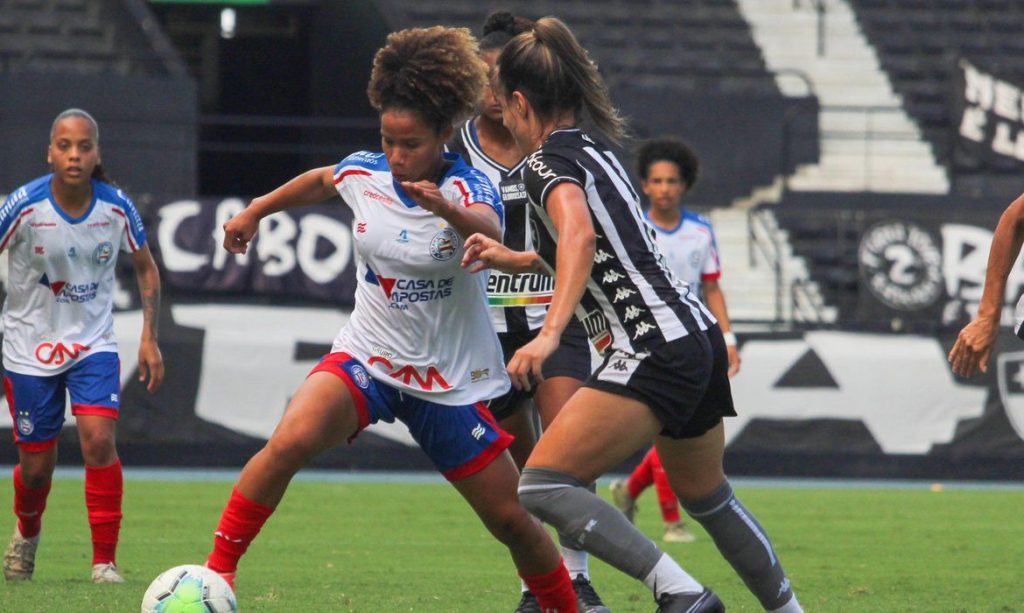 No Estádio Nilton Santos, no Rio de Janeiro, o Bahia não pôde contar com a goleira Anna Bia, afastada após testar positivo para Covid-19. A artilheira do campeonato, Gadu, com 11 gols, também não atuou por ainda estar se recuperando de lesão. Num duelo muito equilibrado, o Botafogo, único entre os semifinalistas que sofreu uma derrota no decorrer da competição, quase acabou com uma invencibilidade de um ano e sete meses do Bahia. Já aos 40 do segundo tempo, Karol Lins finalmente conseguiu furar a defesa baiana e abrir o placar.
