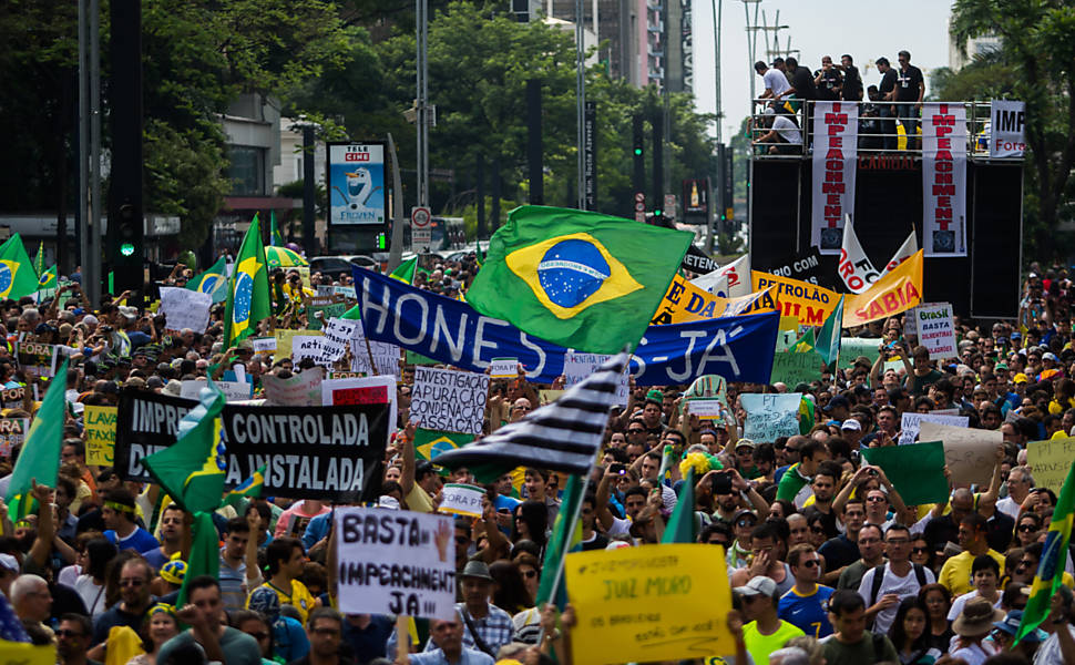 O senador José Serra (PSDB-SP) chegou por volta das 16 horas à Avenida Paulista, região central de São Paulo, e deu uma volta em torno do carro de som do movimento Vem Pra Rua. Foi muito assediado e teve o nome aclamado pelos ativistas.
