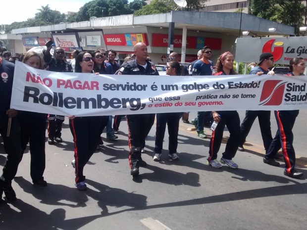 Em cima do carro de som que acompanhava o ato dos servidores, um papai noel vestido de preto representava o luto da categoria, segundo sindicato. Enquanto caminhavam em direção à W3 Sul, os servidores gritavam: “Rollemberg não pagou, a saúde parou”.
