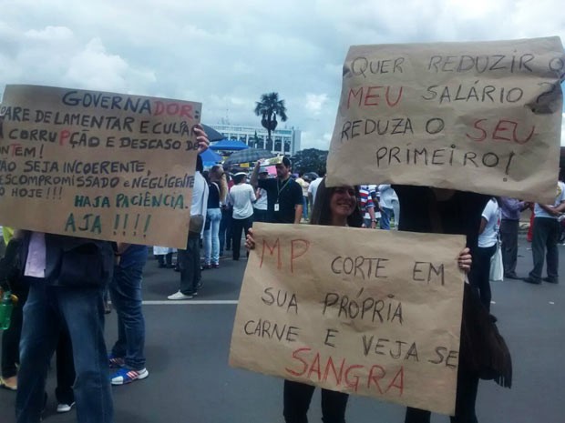 Centenas de servidores públicos fecharam o Eixo Monumental no final da manhã desta quarta-feira (11) em protesto contra ação do Ministério Público que pede a suspensão de reajustes acordados pelo ex-governador Agnelo Queiroz com várias categorias do funcionalismo. Pouco antes das 13 horas a via foi liberada, mas ficou no ar uma ameaça: se o salário for reduzido, haverá greve geral.