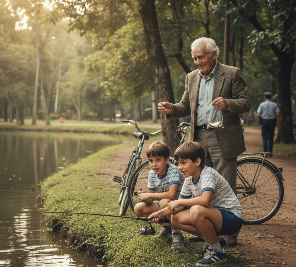 Uma das peripécias mais divertidas e, porque não dizer, arriscadas, da qual nunca vou me esquecer, foi quando em um passeio de bicicleta pelo Horto Florestal, a um dado momento, seu Joaquim tira do bolso um anzol e uma linha, coloca como isca um pedaço de pão e, chegando próximo à margem do lago que existe no local, abaixa-se discretamente para não ser pego em flagrante por nenhum dos guardas do parque, pois, evidentemente, a prática era proibida.
