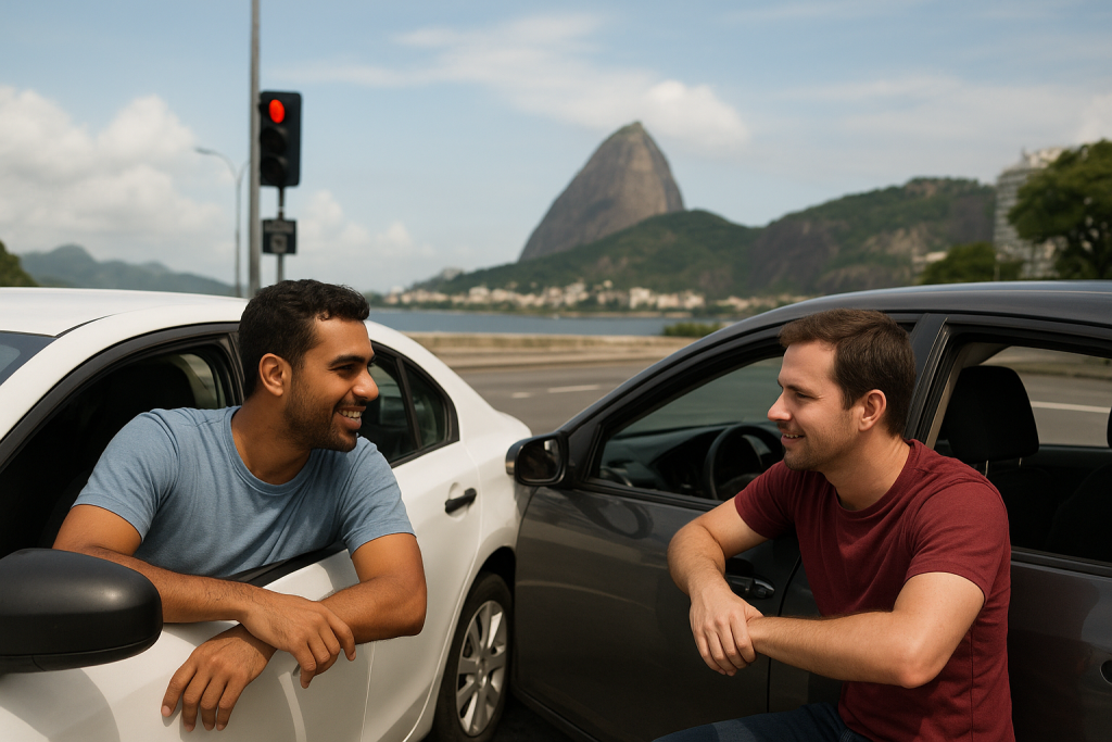– He, he… me perdoe a pressa. É perigoso ficar parado com tantas balas perdidas disparadas por criminosos para roubar simples celulares, crime incentivado por algum governante bêbado.