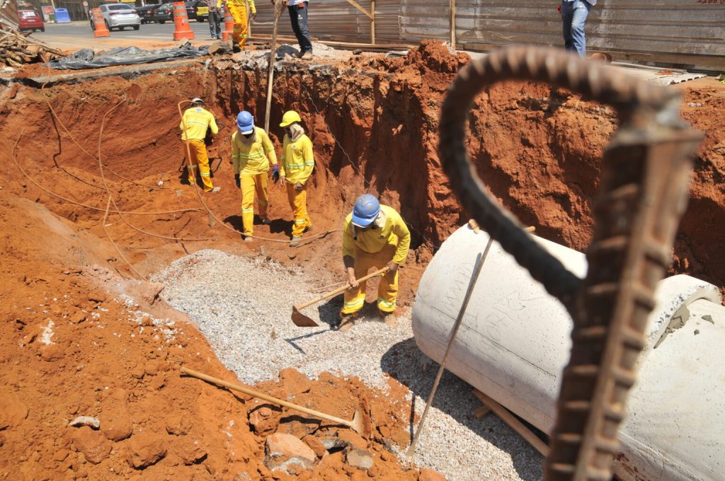 A construção do sistema de drenagem do Túnel de Taguatinga alcançou um novo trecho da obra. Desde segunda-feira (10), os trabalhos se concentram na marginal sul da passagem, mais especificamente no percurso entre a Avenida Samdu e a Avenida Comercial. A instalação dos tubos de escoamento de águas pluviais é a última etapa antes da pavimentação asfáltica da via.