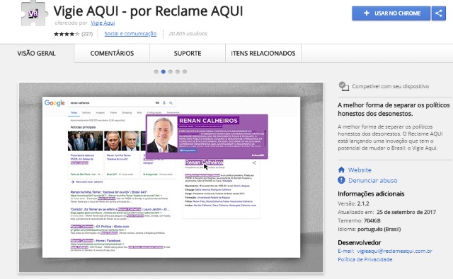 Cor da Corrupção: ferramenta é em forma de extensão que pode ser adicionada ao navegador. Foto: Reprodução/Reclame Aqui