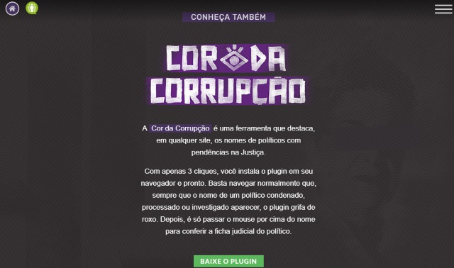 “Basta navegar normalmente que, sempre que o nome de um político condenado, processado ou investigado aparecer, o plugin grifa de roxo. Depois, é só passar o nome por cima do mouse para conferir a ficha judicial do político” (foto abaixo).