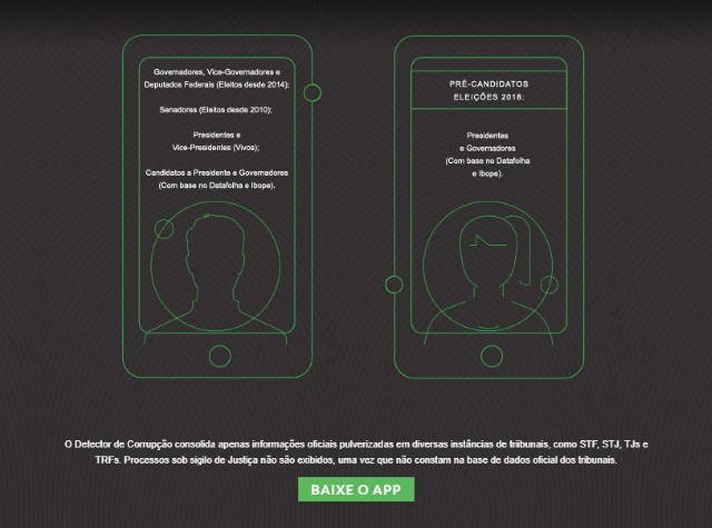 O Detector de Corrupção é um aplicativo lançado pelo site e que está disponível para download em aparelhos com sistema Android ou IOS.