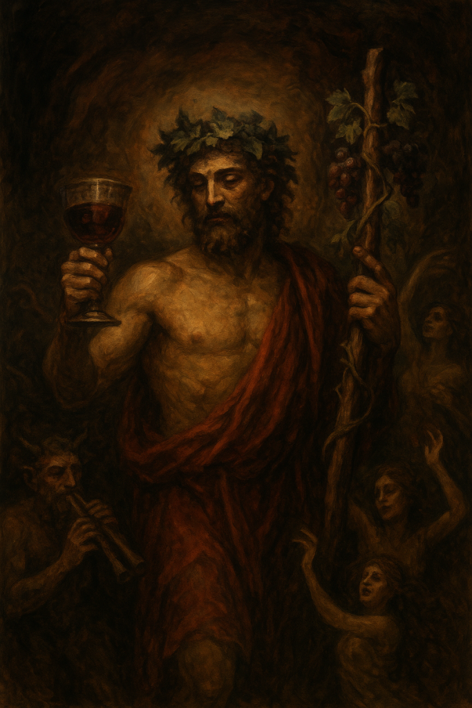 Quem prova do seu néctar, já não bebe: mergulha. É como se cada gole fosse uma chave, destrancando portas internas que jamais deveriam permanecer fechadas. Baco é o senhor dos labirintos invisíveis — aquele que ensina que a sobriedade é apenas uma máscara e que a verdade, quase sempre, está escondida na vertigem.